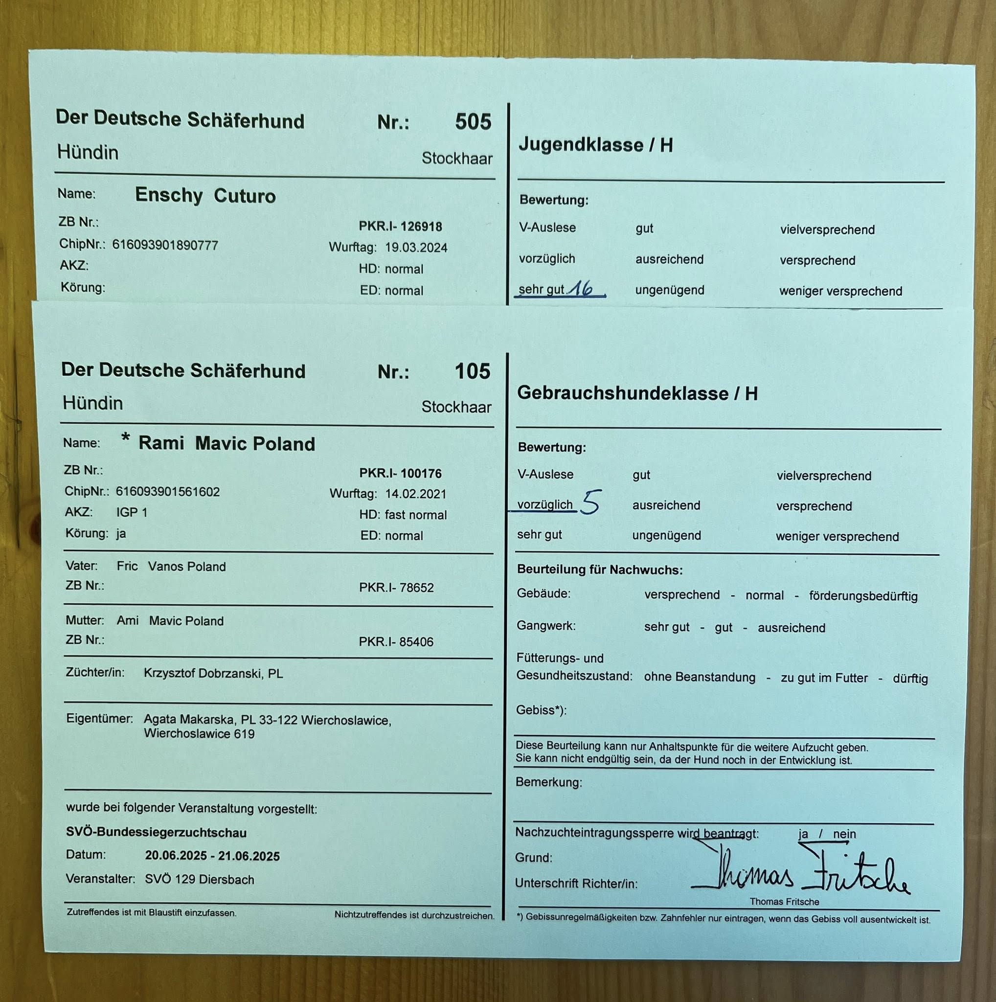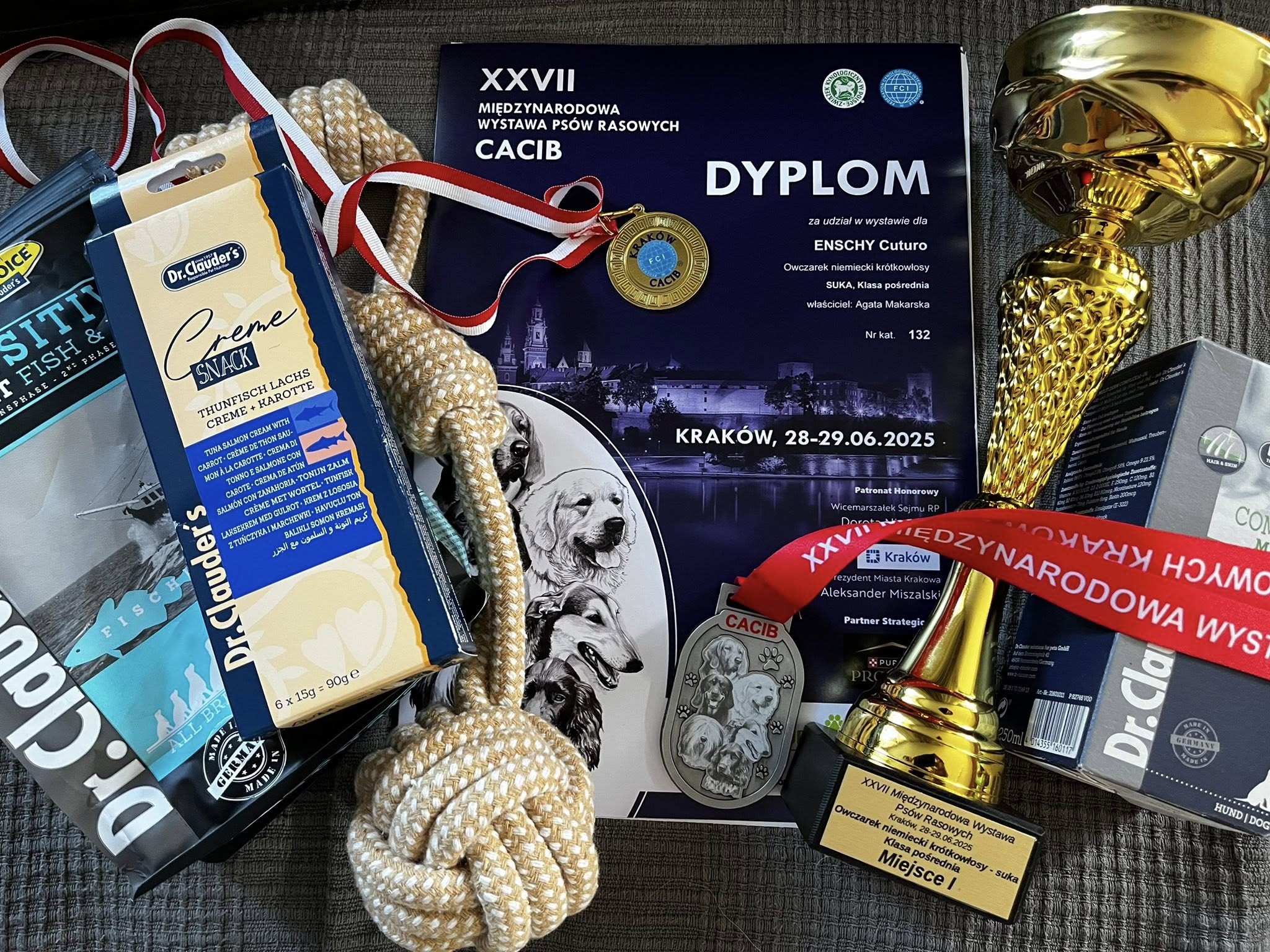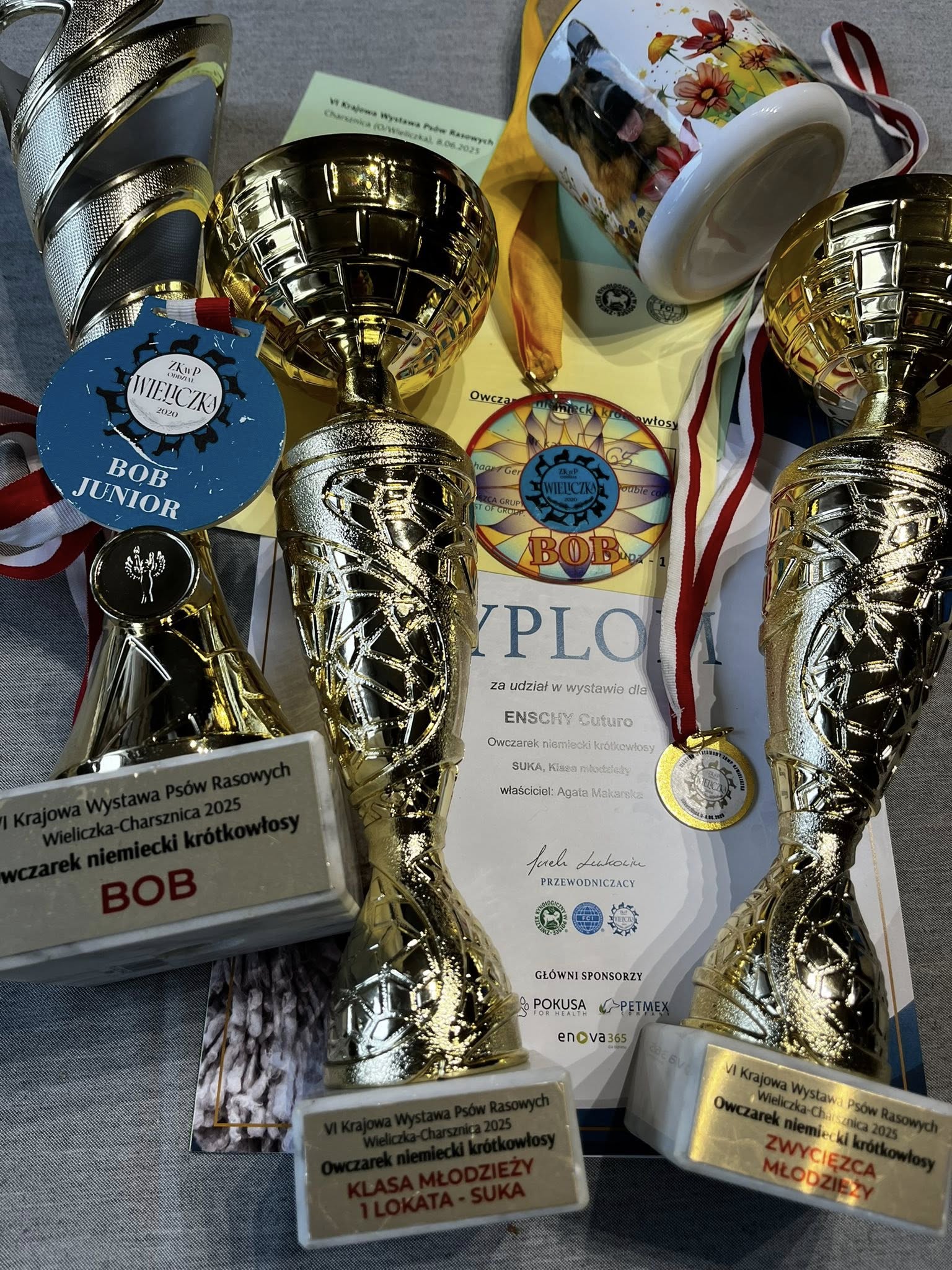 klasa: młodzieży lokata: 1 ocena: doskonała, Zwycięzca Młodzieży, Najlepszy Junior w Rasie, CACIB Junior, Zwycięzca Rasy Puchar imienia Eryka Nowaka dla Najpiększniejszego Owczarka Niemieckiego Bytom 2025